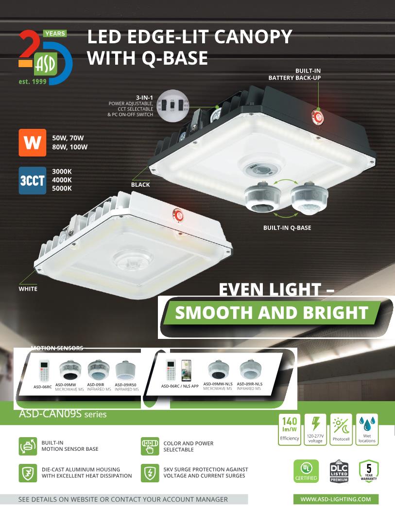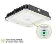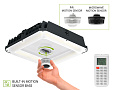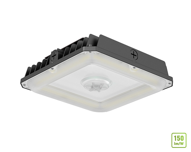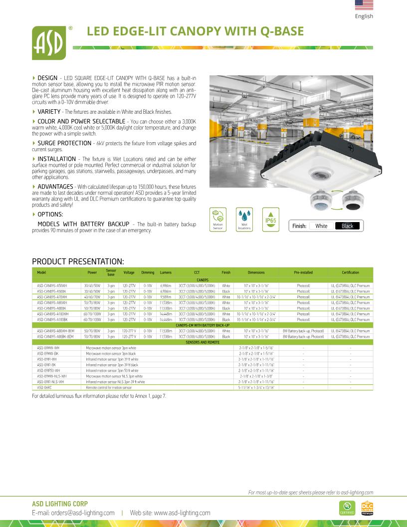DESIGN. LED SQUARE EDGE-LIT CANOPY WITH Q-BASE has a built-in motion sensor base, allowing you to install the microwave PIR motion sensor. Die-cast aluminum housing with excellent heat dissipation along with an anti-glare PC lens provide many years of use. It is designed to operate on 120-277V circuits with a 0-10V dimmable driver.