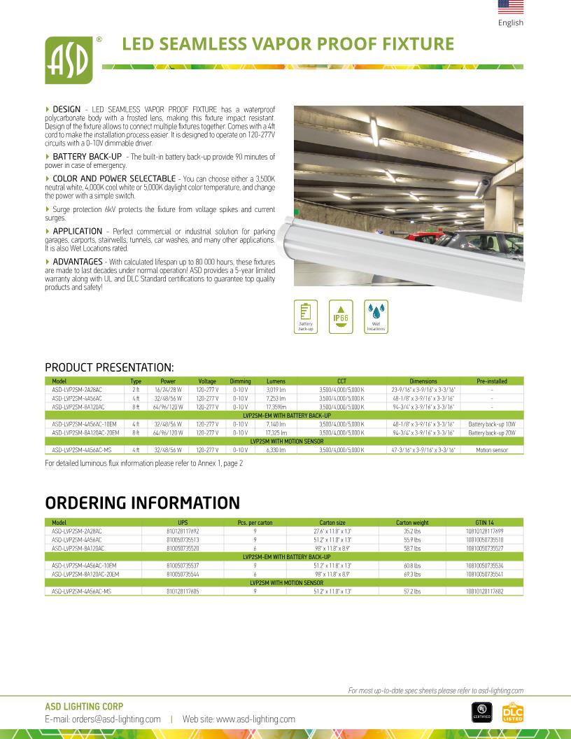 ADVANTAGES: With calculated lifespan up to 80 000 hours, these fixtures are made to last decades under normal operation! ASD provides a 5-year limited warranty along with UL and DLC Standard certifications to guarantee top quality products and safety!