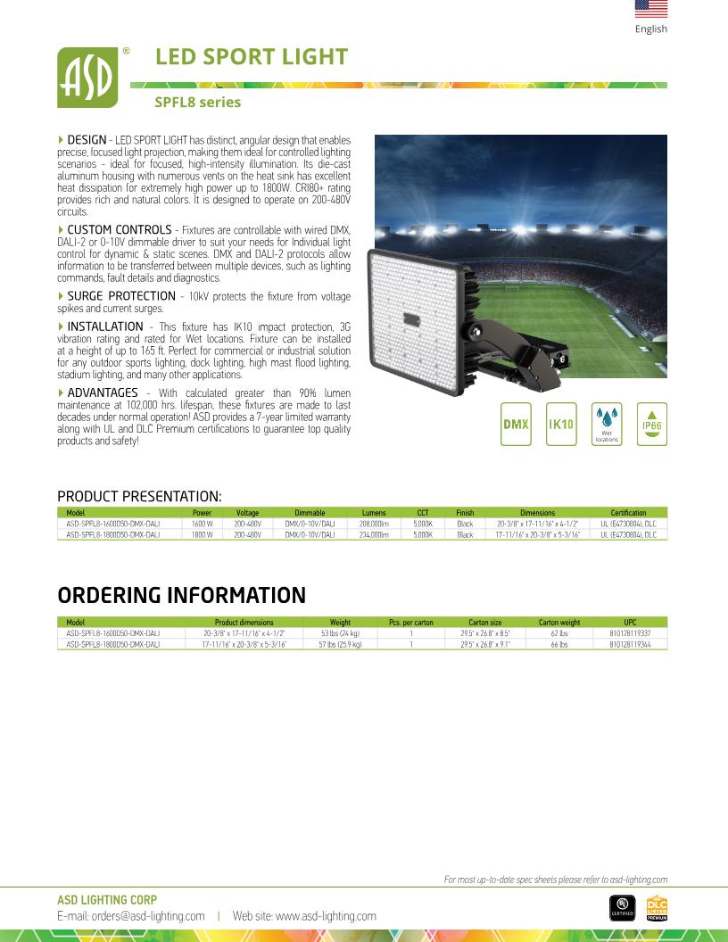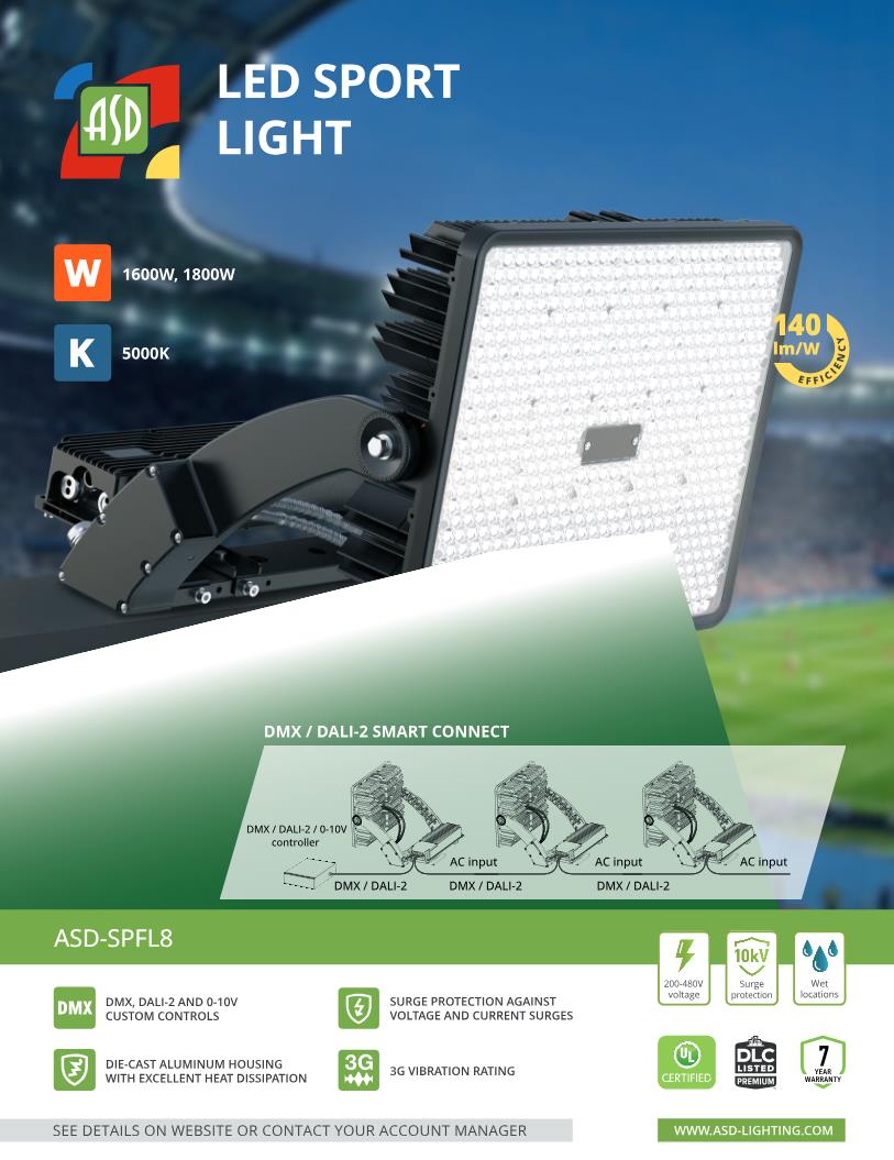 DESIGN. LED SPORT LIGHT has distinct, angular design that enables precise, focused light projection, making them ideal for controlled lighting scenarios - ideal for focused, high -intensity illumination. Its die-cast aluminum housing with numerous vents on the heat sink has excellent heat dissipation for extremely high power up to 1800W. CRI80+ rating provides rich and natural colors. It is designed to operate on 200-480V circuits.